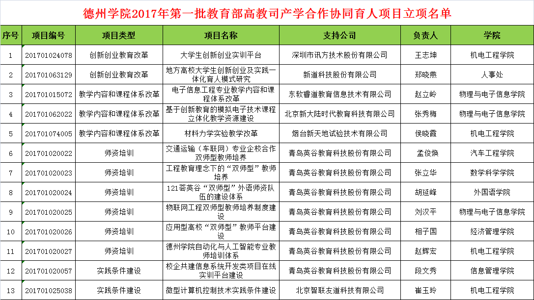 2017年第一批教育部高教司产学合作协同育人项目立项名单