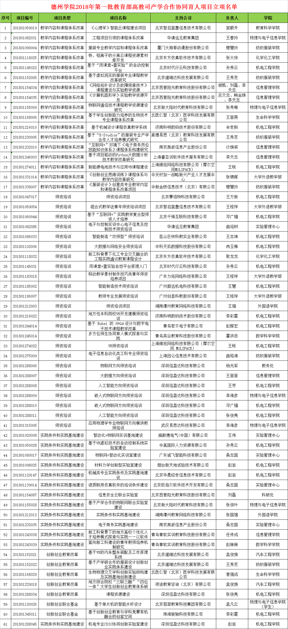 2018年第一批教育部高教司产学合作协同育人项目立项名单