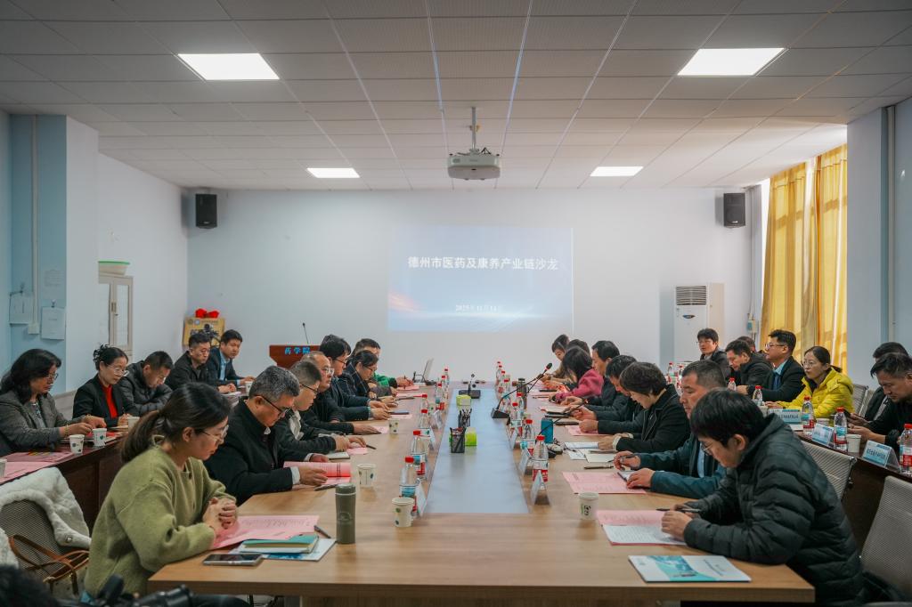 在座谈交流环节,药学院主要负责人介绍了学院在学科建设、科研平台和人才培养方面的情况,着重介绍了药用辅料、药物递送、药品质量控制、药食同源产品开发等方向的布局和研究进展。来自陵城区、乐陵市、齐河县等16家医药制造企业的负责人分别介绍了企业现状、发展需求及对产业集聚的建议。市卫健委、市场监督管理局、医保局及金融机构现场回应企业问题,共商发展路径。