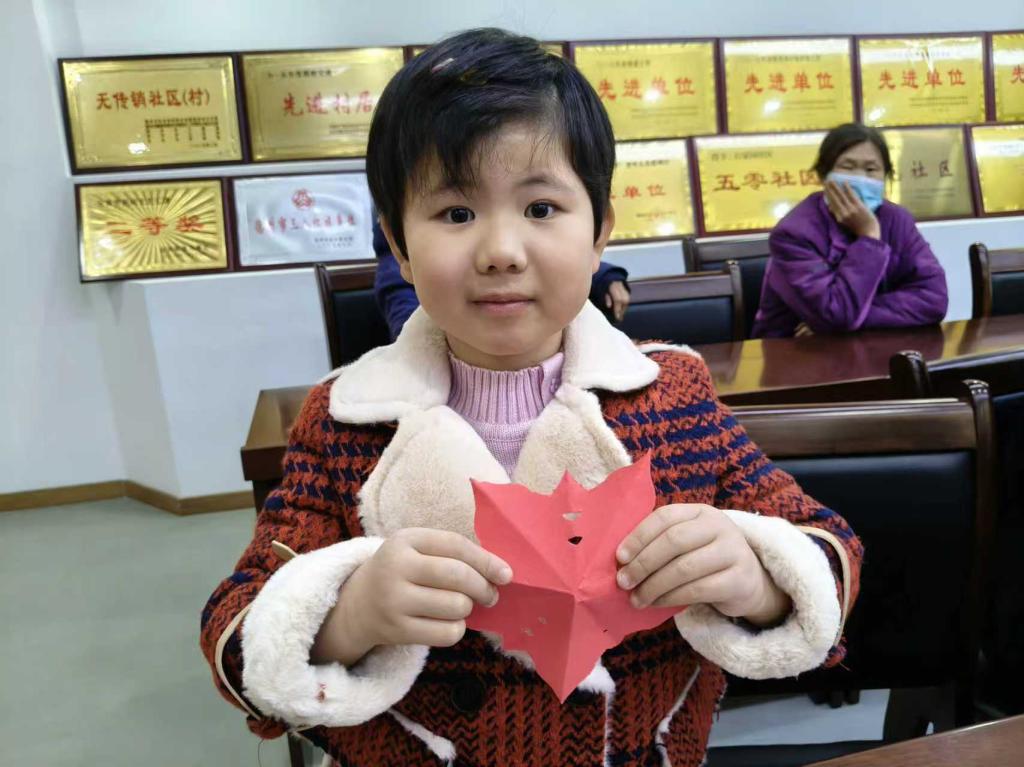 志愿者们精心搭建起“中药文化体验区”,通过实物展示、趣味图片与通俗讲解,带领大家认识黄芪、枸杞、陈皮等常见中药,详解其外形特征、实用价值及背后的文化典故。在手工环节,志愿者将艾草、薄荷叶等中药植物轮廓设计成童趣剪纸模板,耐心示范折纸、描线、剪刻技巧。孩子们专注投入,在指尖流转间剪出一幅幅创意十足的中药元素作品,不仅锻炼了动手能力,更在传统技艺实践中触摸到文化的温度。