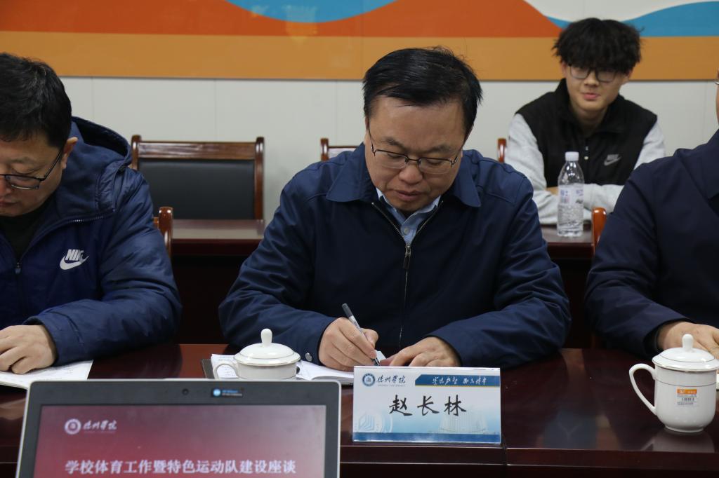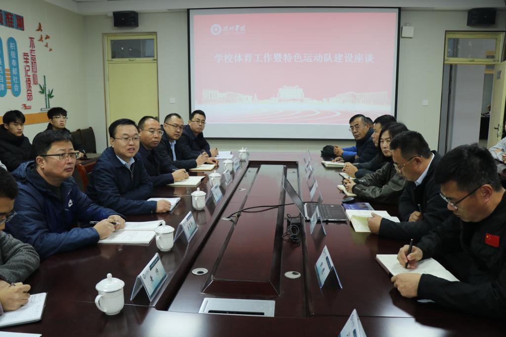 10月23日下午,党委副书记、校长赵长林带队到体育学院调研藤球队建设工作,并与藤球队师生座谈交流。
