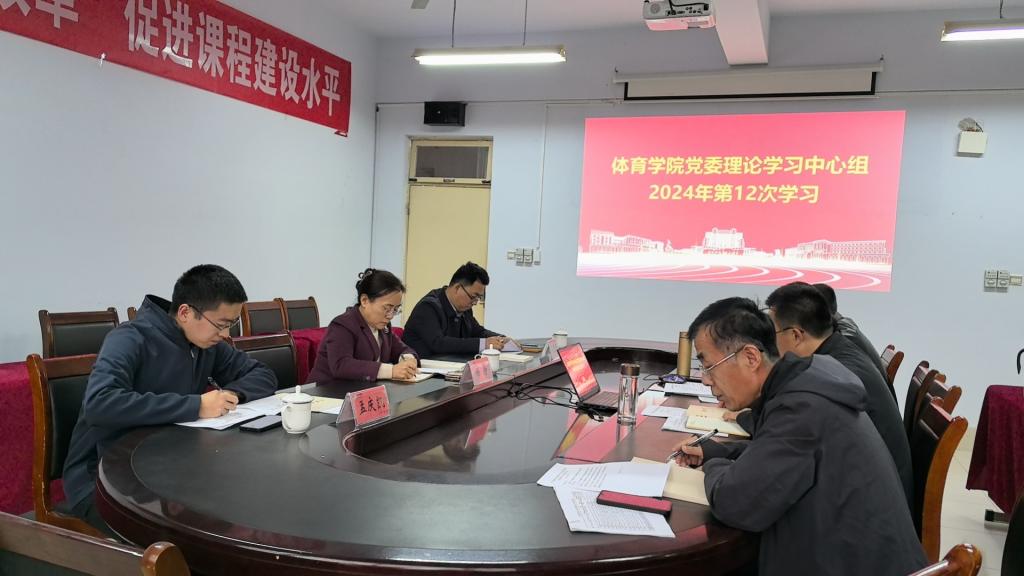 11月15日下午,体育学院党委理论学习中心组在体育楼三楼会议室进行第12次集中学习,学校党委委员、副校长徐静列席旁听并进行指导。教务处副处长范克胜、党委宣传部(教师工作部)意识形态与思政工作科科长孟庆凯陪同旁听。