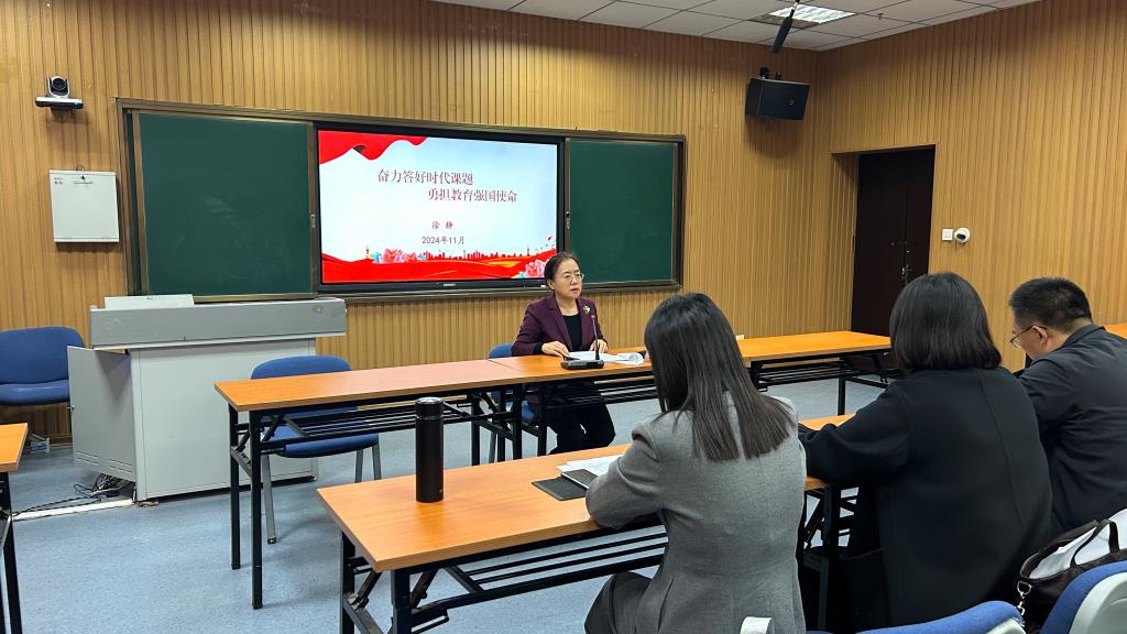 为深入学习贯彻党的二十届三中全会精神,凝聚共识,扎实推进学习宣传贯彻工作走深走实,进一步全面深化学校新课程教育改革,11月7日,学校党委委员、副校长徐静为党建联系点讲党课,宣讲党的二十届三中全会精神。