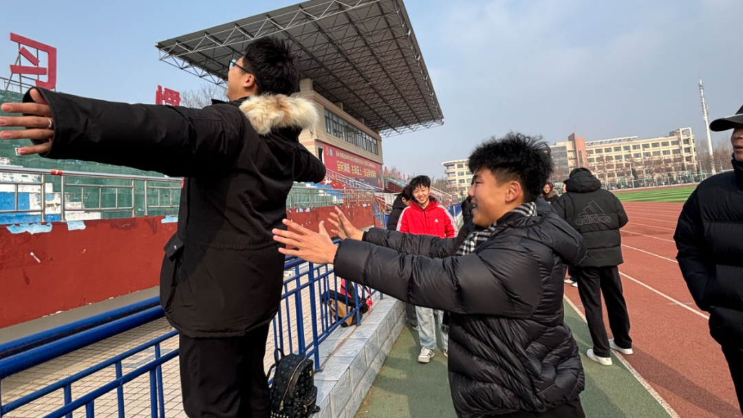 活动在体育场举行,以运动协作为主线,设计了“信任背摔”“冬日暖心接龙”等环节。在“信任背摔”中,学生们两人一组,一人闭目后倒,另一人负责接护。完成动作后,双方围坐交流,围绕“信任”与“责任”分享感受,也可倾诉近期烦恼,倾听者全程陪伴、不予评判,在肢体协作中深化情感联结。随后的“冬日暖心接龙”则要求每人依次说出与“冬日温暖”相关的句子,未接上者进行才艺展示。活动在轻松活泼的氛围中展开,迅速拉近了同学之间的距离,也激发了团队活力。