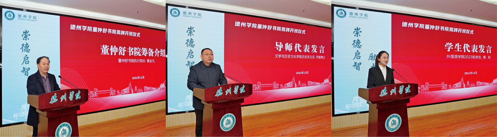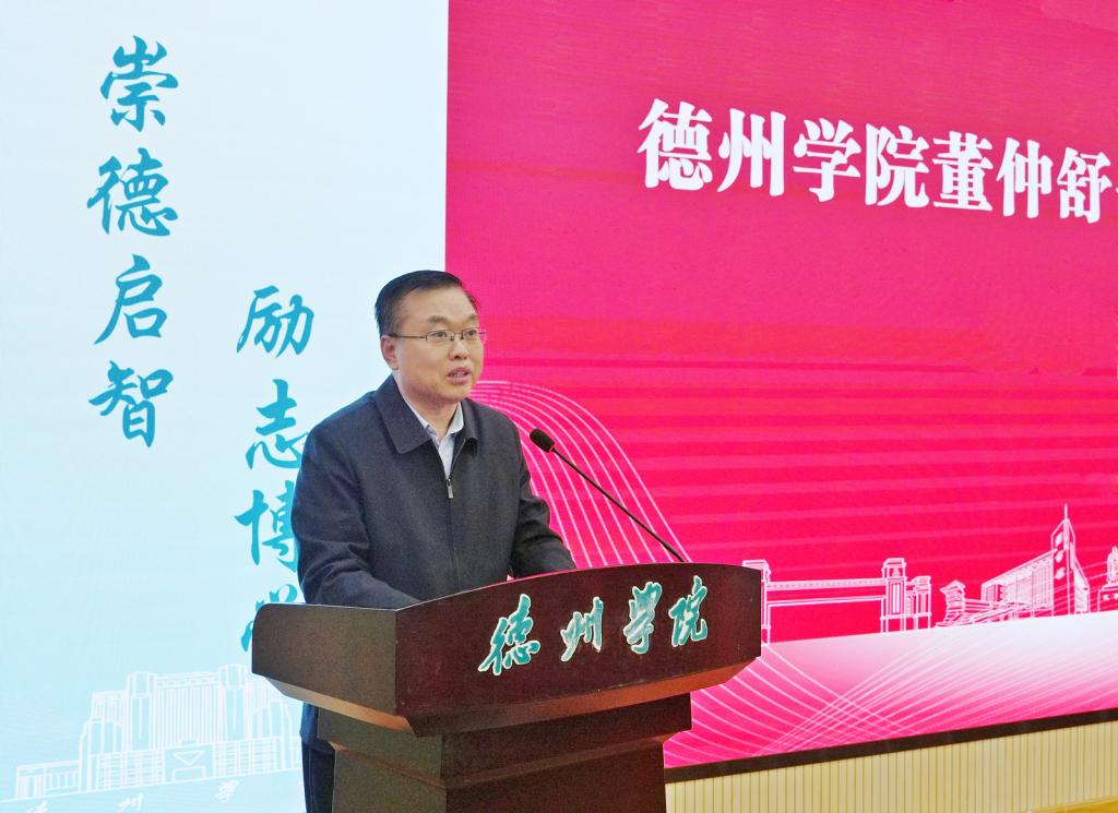 赵长林致辞,对参加揭牌开班仪式的领导、专家表示欢迎。他指出,董仲舒书院的成立,是学校在本科教育改革浪潮中深化内涵建设、探索卓越人才培养模式的关键战略举措。董仲舒作为德州本土孕育的杰出思想家和政治家,其深邃的哲学思想与政治主张对中国文化影响深远。书院以其命名,旨在传承和弘扬这一宝贵的学术精神与教育理念,着重培养理论基础厚、学科背景宽、综合素质高、创新能力强、视野开阔、具有社会责任感和符合新时代要求的高素质拔尖创新应用型人才。希望董仲舒书院成为开云网址合集的一张亮丽名片,传承创新中华民族历史和文化,为学校事业高质量发展贡献力量。