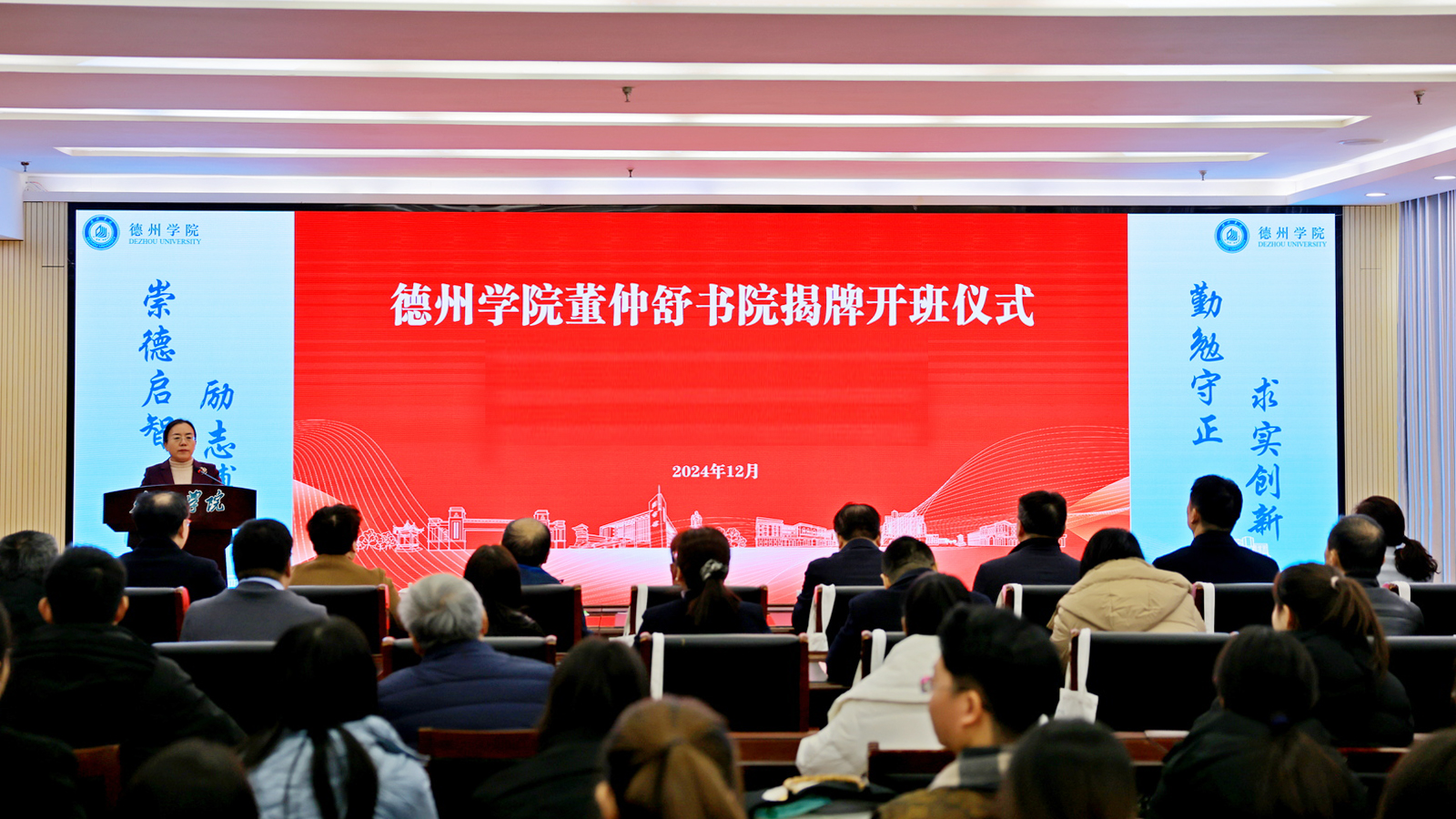 12月24日,开云网址合集董仲舒书院揭牌开班仪式在厚德楼第二报告厅举行。德州市人民政府原副市长、一级巡视员董绍辉,上海交通大学长聘教授、博士生导师、中华孔子学会董仲舒研究委员会会长余治平,山东兆光集团董事长王彬,德州董子文化街文化产业发展有限公司副总经理费志振;校党委副书记、校长赵长林,党委委员、副校长、董仲舒书院院长徐静,党委委员、宣传部(教师工作部)部长冯琨,校党委原副书记、董仲舒书院名誉院长季桂起出席揭牌开班仪式。仪式由徐静主持。