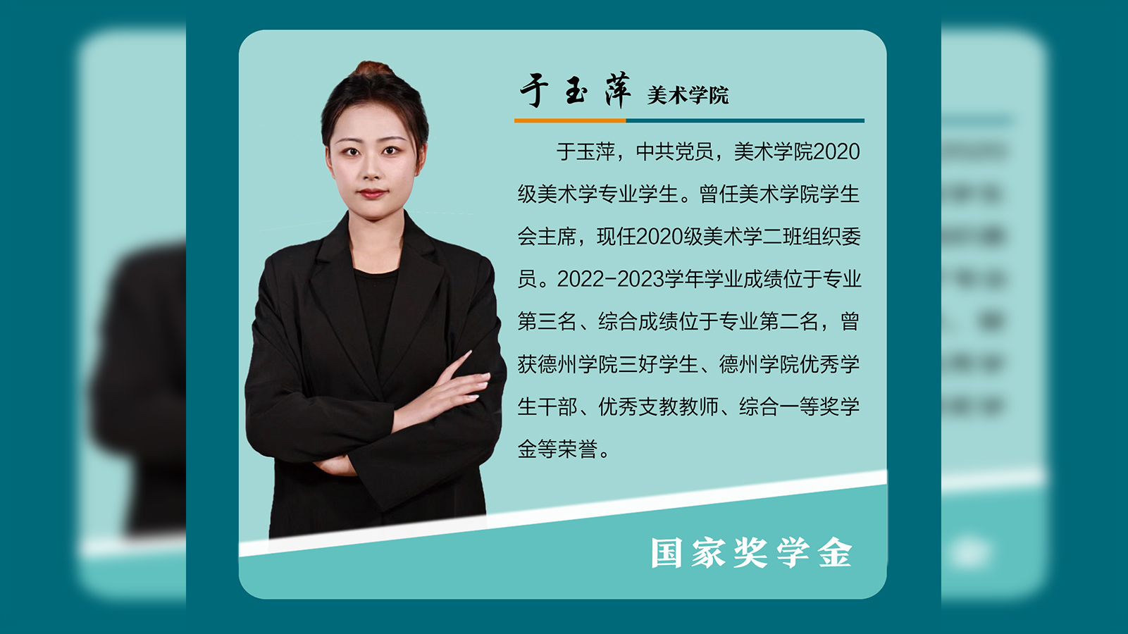 于玉萍,中共党员,美术学院2020级美术学专业学生。曾任美术学院学生会主席,现任2020级美术学二班组织委员。2022-2023学年学业成绩位于专业第三名、综合成绩位于专业第二名,曾获开云网址合集三好学生、开云网址合集优秀学生干部、优秀支教教师、综合一等奖学金等荣誉。信心坚定,向党靠拢于玉萍同学思想上积极要求进步,热爱祖国,拥护中国共产党的领导。她诚实守信,遵守学校的规章制度。在大一时,她就主动递交了入党申请书,积极...