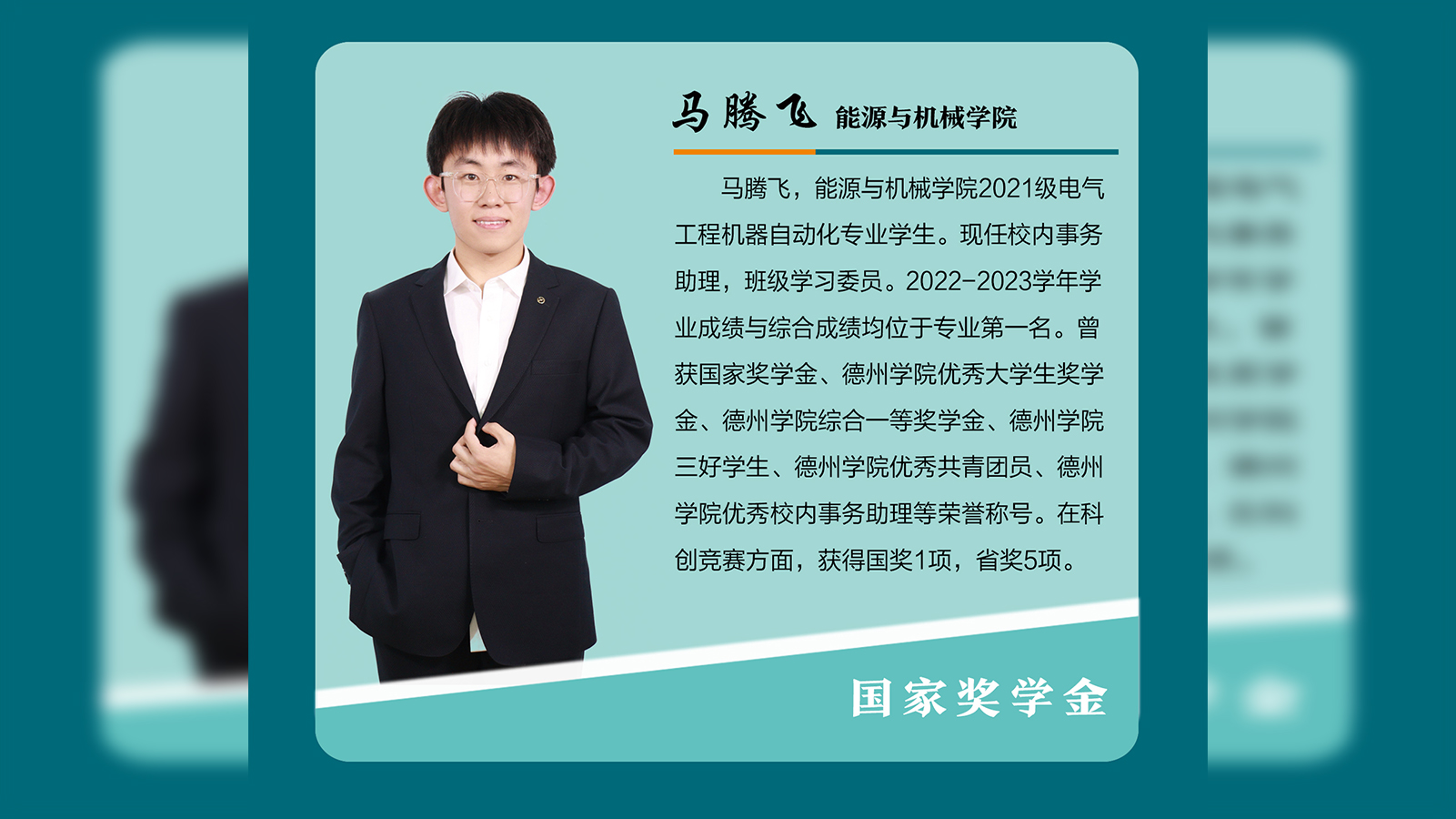 马腾飞,能源与机械学院2021级电气工程及其自动化专业学生。现任校内事务助理,班级学习委员。2022-2023学年学业成绩与综合成绩均位于专业第一名。曾获国家奖学金、开云网址合集优秀大学生奖学金、开云网址合集综合一等奖学金、开云网址合集三好学生、开云网址合集优秀共青团员、开云网址合集优秀校内事务助理等荣誉称号。在科创竞赛方面,获得国奖1项,省奖5项。气有浩然,学无止境“在该奋斗的岁月里,对得起每一寸光阴”,马腾飞知道,学习的路...