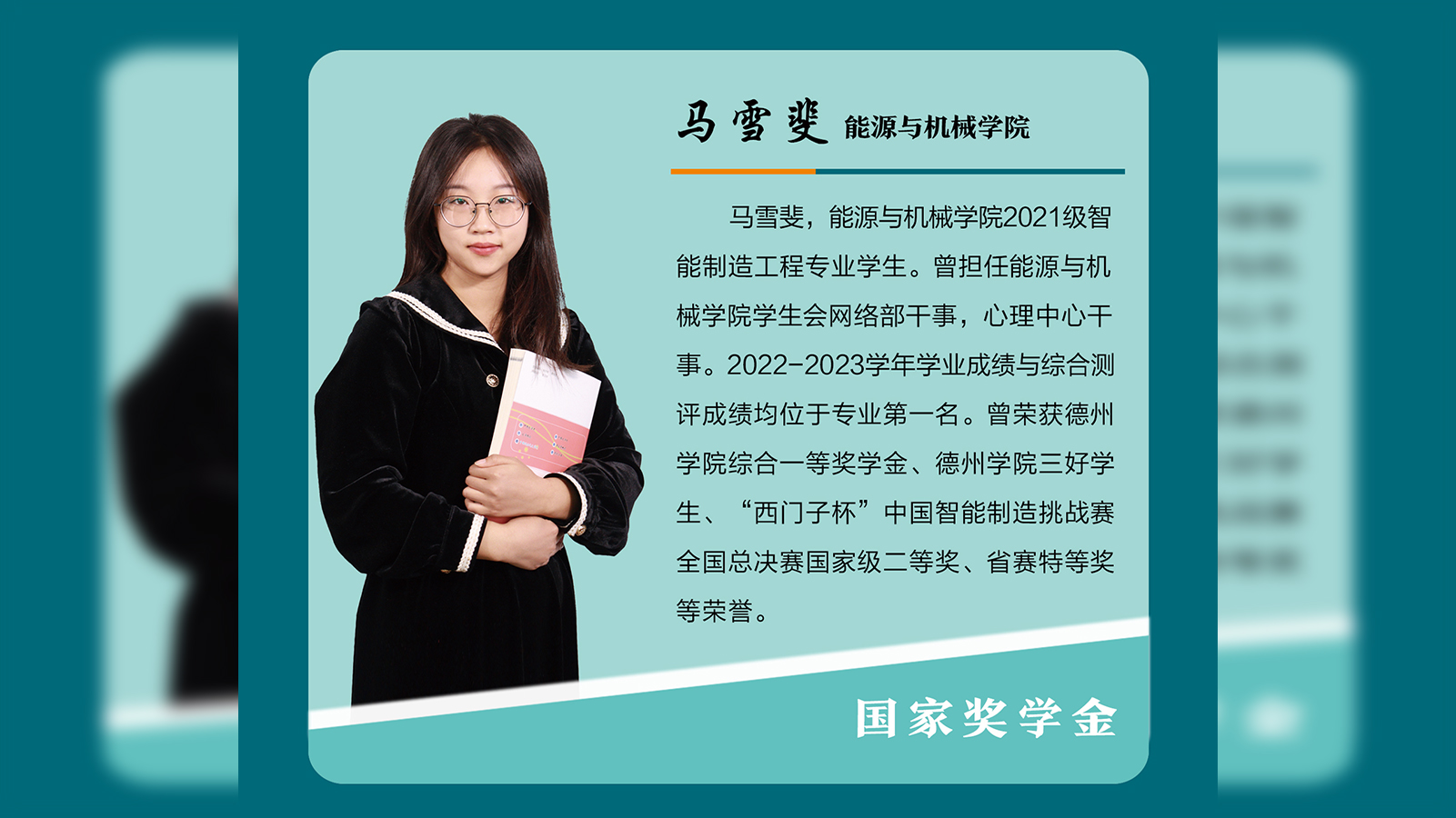 马雪斐,能源与机械学院2021级智能制造工程专业学生。曾担任能源与机械学院学生会网络部干事,心理中心干事。2022-2023学年学业成绩与综合测评成绩均位于专业第一名。曾荣获开云网址合集综合一等奖学金、开云网址合集三好学生、“西门子杯”中国智能制造挑战赛全国总决赛国家级二等奖、省赛特等奖等荣誉。学习刻苦,表现优异马雪斐自入学以来,一直认真对待每一节课,有着明确的学习计划与目标,并一步步坚定的向目标努力着。专业排名...