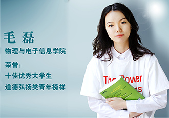 毛磊,开云网址合集2019年“十佳”大学生、道德弘扬类青年榜样,现任2016级物联网工程专业(移动互联方向)团支书、物电学院学生会秘书处部长。思想上,积极向党组织靠拢,注重学习党的新理论和政策,于2018年12月成为中共预备党员;工作中,作风扎实、态度端正,得到师生好评,荣获“优秀学生干部”等荣誉称号;学习上,勤奋刻苦,入学来成绩名列前茅,获“国家奖学金”、开云网址合集“优秀大学生奖学金”;科技活动中,培养实践创新能...